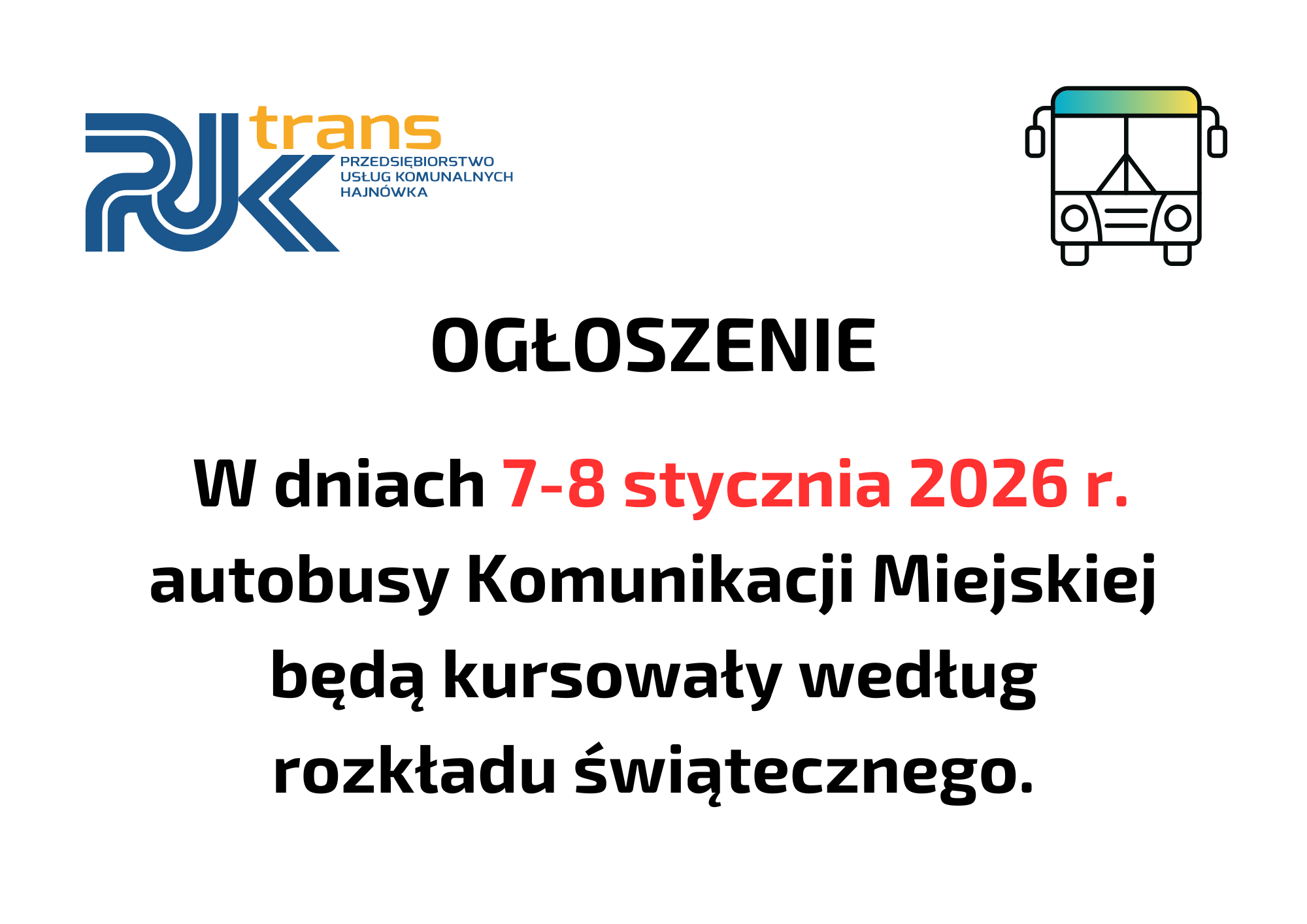 Ogłoszenie: kursowanie autobusów 7-8 stycznia 2026 — więcej
